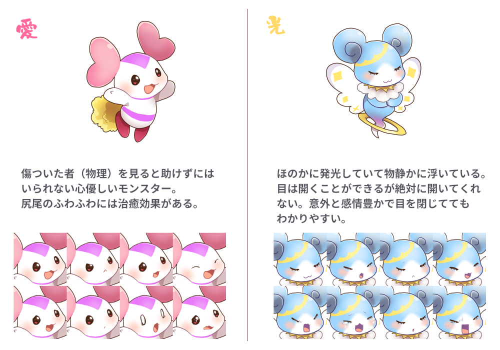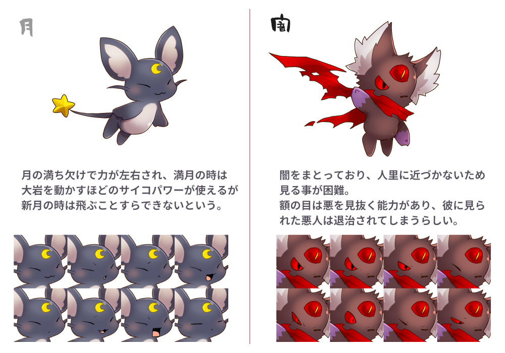 もとのデザインは紫色のフードをかぶったただのネズミだったんですが立ち絵にすると寂しくなってしまったので大分デザインを変えました。