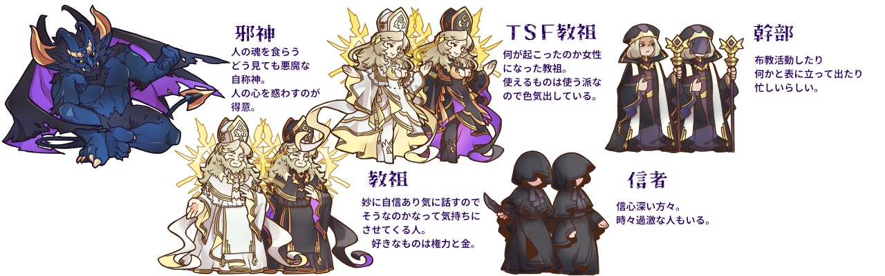 ※2023 1/25 TSF教祖のデザインが意図せずとあるキャラに酷似してる気がしたのでデザインかえました。